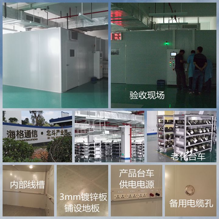 1、產(chǎn)品老化需要供電,電源插座集成到老化房?jī)?nèi)部線槽上,線槽離地1.2m; |