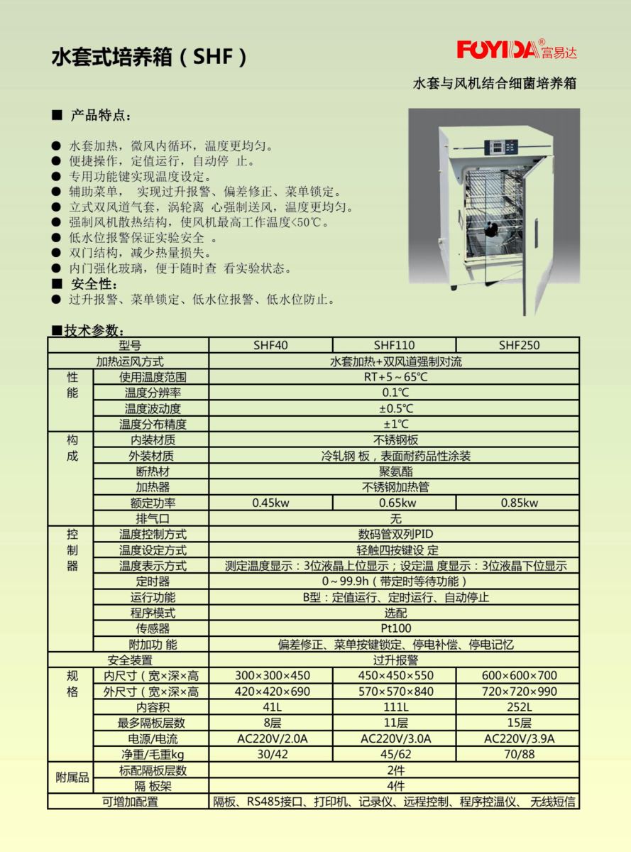 富易達(dá) SHF系列 水套式培養(yǎng)箱